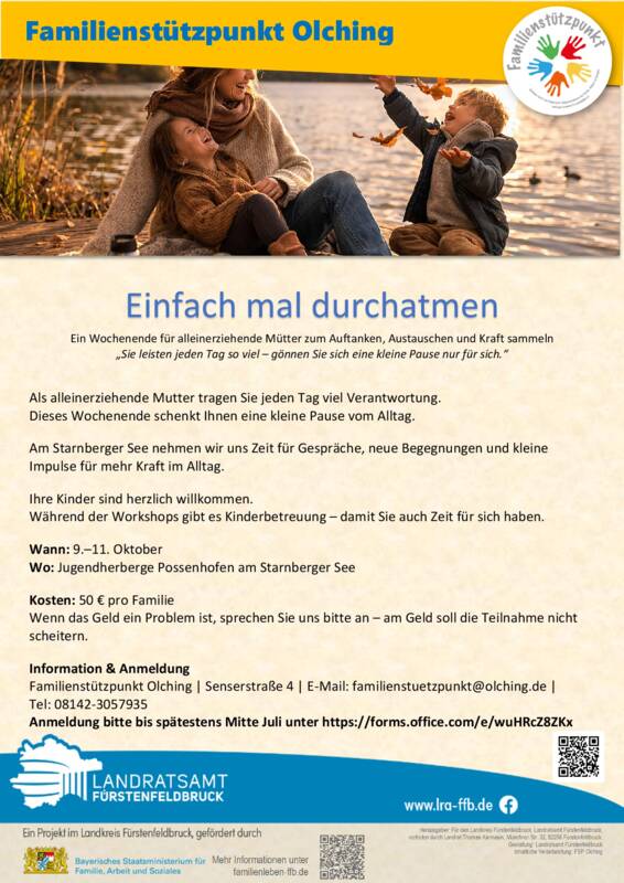 Weitere Informationen für Familien in Olching und im Landkreis erhalten Sie jederzeit und immer aktuell auf der Homepage familienleben-ffb.de oder Tel: 08142/3057935