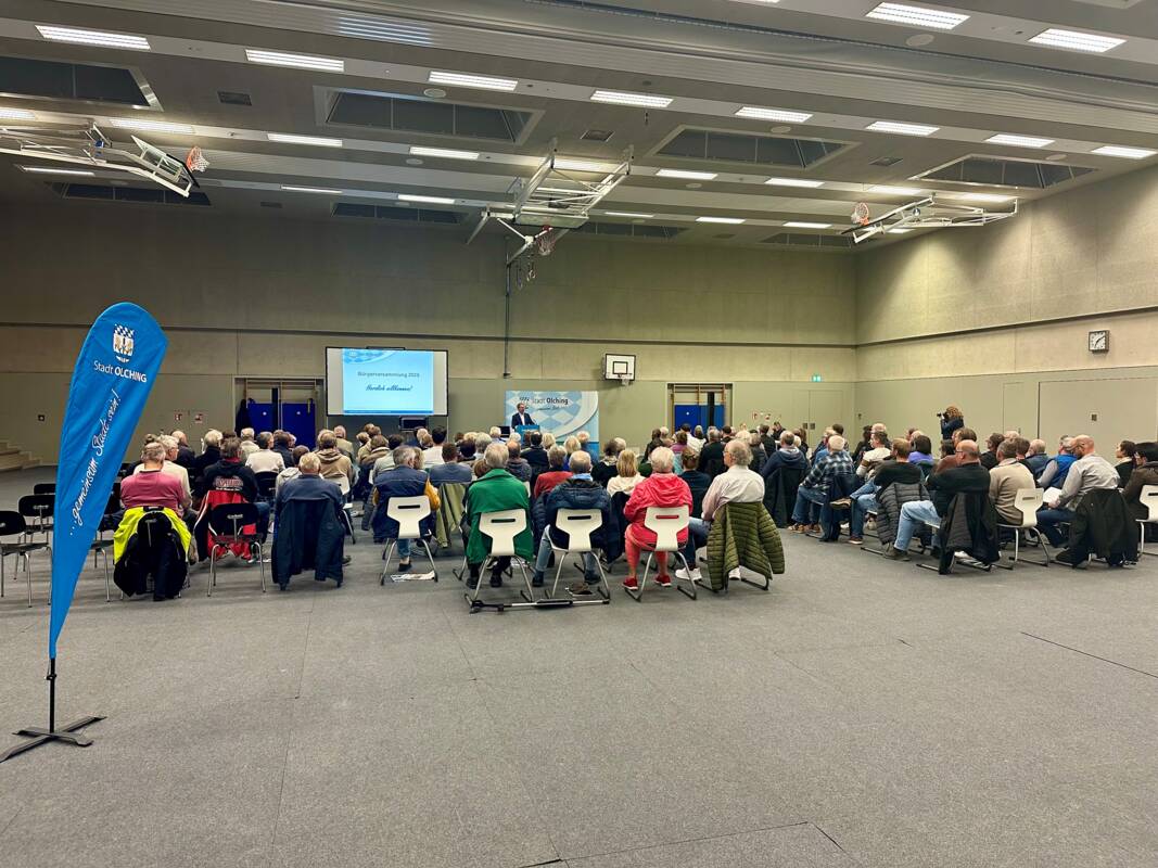 Am 15. Oktober 2025 fand die Bürgerversammlung 2025 in der Mehrzweckhalle der Amperschule statt. Rund 165 Bürgerinnen und Bürger folgten der Einladung der Stadt Olching, lauschten dem Bericht von Bürgermeister Magg und nutzten im Anschluss die Gelegenheit, Fragen zu stellen und mit dem Bürgermeister ins Gespräch zu kommen.
