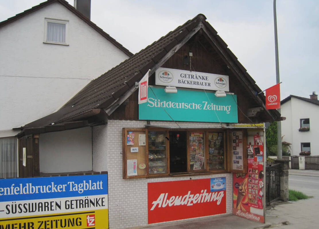 Wolfgang GierstorferIn der Ordenslandstraße konnten sich Kinder beim „Gustl“ tagsüber im Straßenverkauf vom Gaststättenbetreiber August Brod von 1965 bis 1984 ihre Süßigkeiten kaufen. Besonders beliebt waren die kleinen Eistörtchen. An der Münchner Straße eröffnete bereits 1950 Therese Hölzlhammer ihren Kiosk, der Ende der 1980er Jahre geschlossen wurde. Er war mit zwei hölzernen Hirschköpfen verziert. Der Fürstenfeldbrucker Maler Ludwig Gierstorfer hatte die Vorzeichnung für den Schreiner angefertigt.